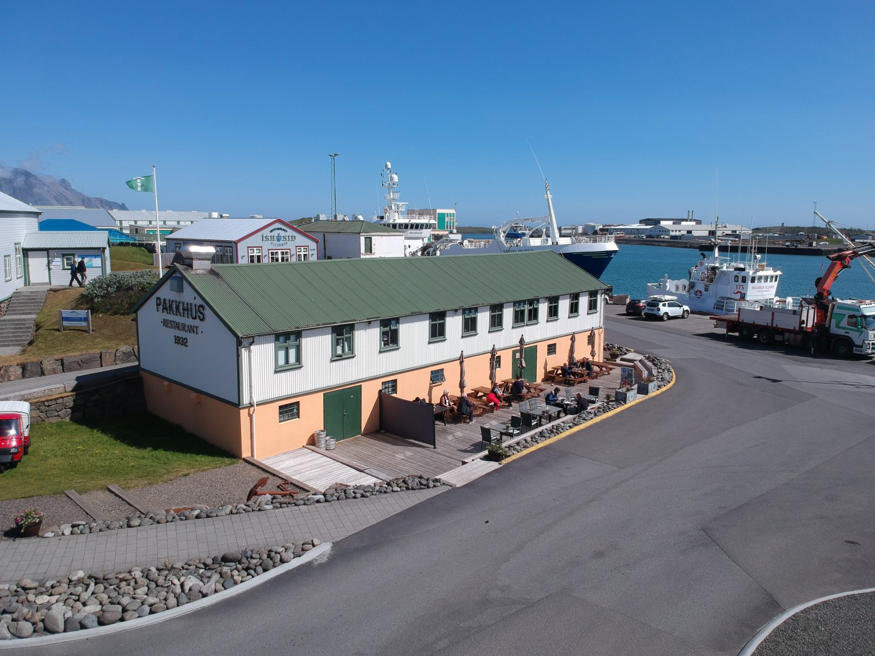 Pakkhús was originally built using timber from old houses around 1932. As the name suggests, the building was used as a storage warehouse, and you can still see old stamps on its walls from when fish was exported to Spain and other countries.